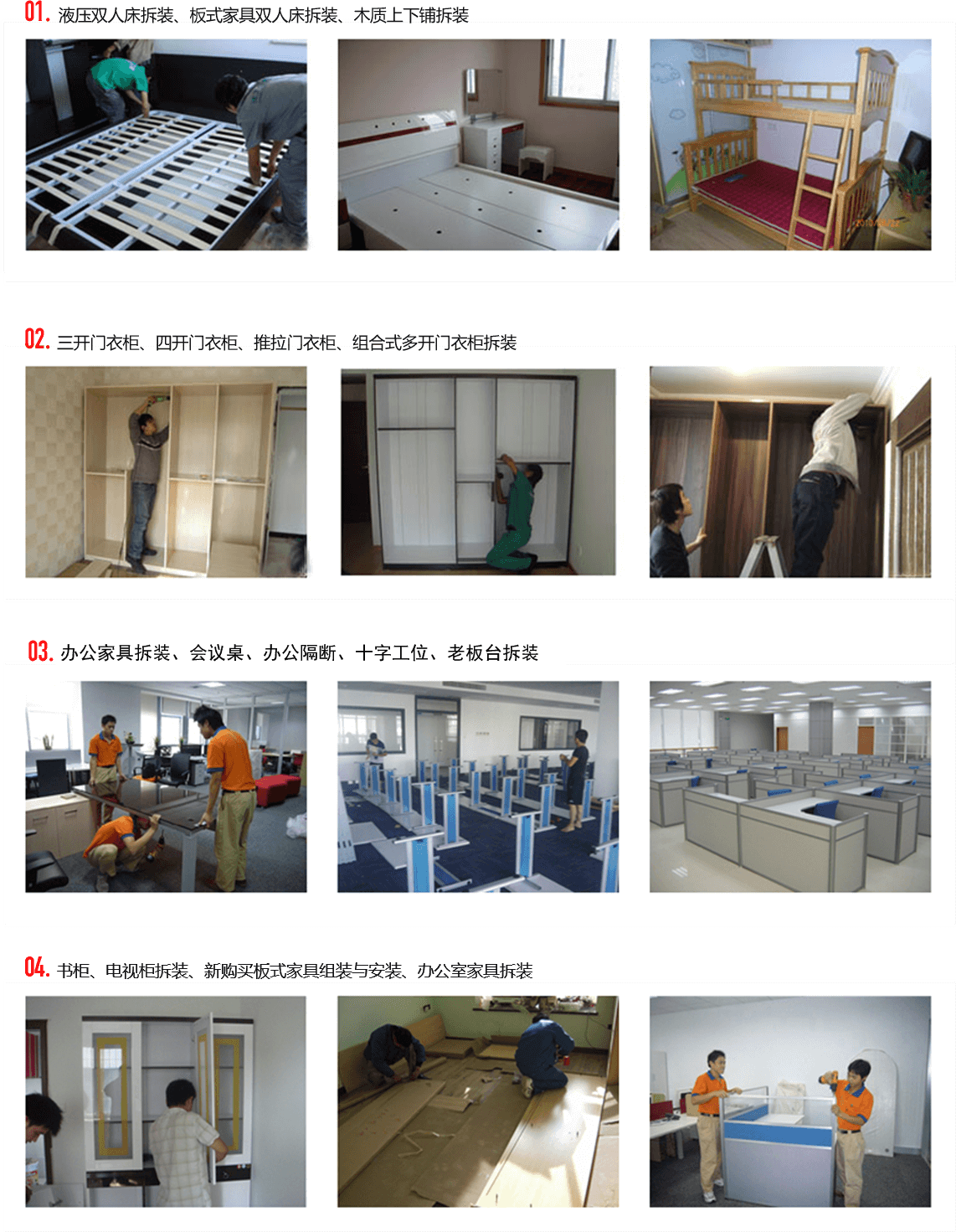 我公司有一批专业的拆装队伍,可拆装各种品牌家具家电,我们的拆装师傅受过专业的培训,并长期接触各种复杂的家具拆装服务,有很丰富的拆装经验。